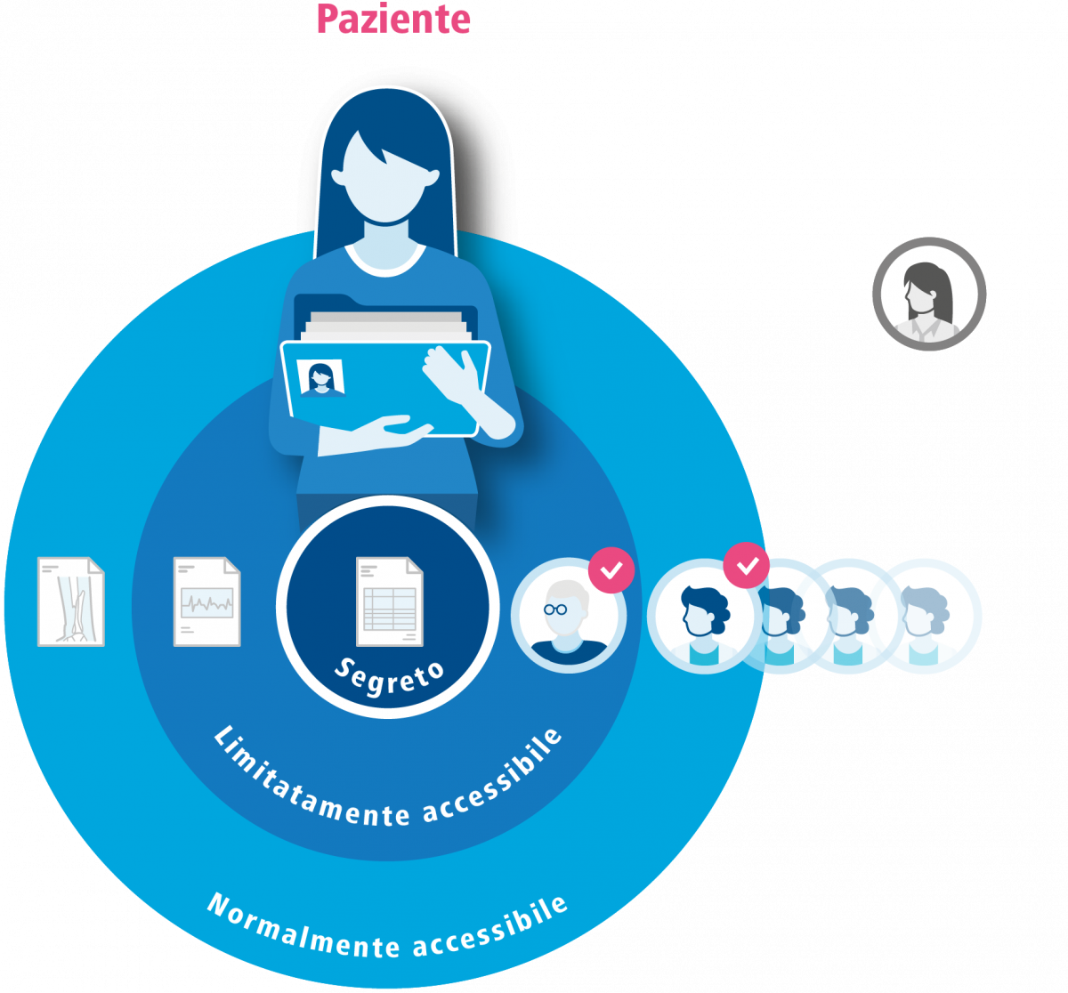 Documenti sensibili, consultabili esclusivamente da professionisti della salute a cui hai accordato un diritto d’accesso speciale, più ampio.
